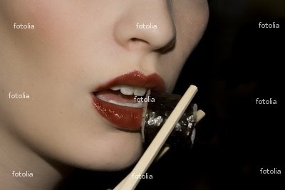 'Woman Eating Sushi With Chopsticks.' Wall Decal - 72"W x 48"H Removable Graphic Overview