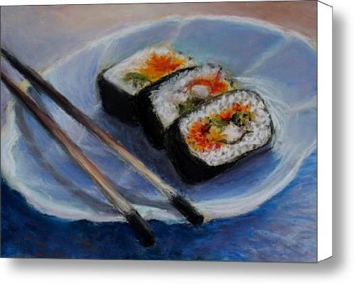 This is a beautiful stretched-canvas print wrapped on 1.5" thick stretcher bars. The print is professionally printed, assembled, and shipped within 2 - 3 business days from our production facility in North Carolina and arrives ready-to-hang on your wall. Fine Art America is home to more than 75,000 artists from all over the world who entrust us to fulfill their print orders online. We offer a 30-day money-back guarantee on every print that we sell and look forward to helping you select your next piece. Keywords: Sushi Canvas Print, Food Canvas Print, Chopsticks Canvas Print, Still Life Canvas Print, Rice Canvas Print.../ Happy Sushi Canvas Print / Canvas Art - Artist Susan Jenkins / chopsticks